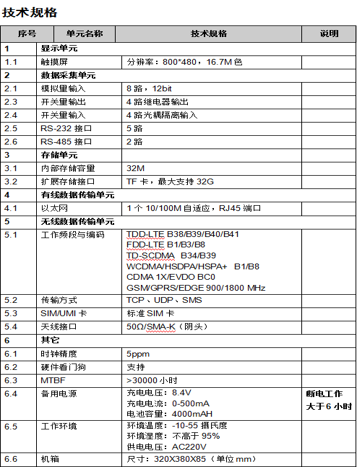 数据采集传输终端采用工业级嵌入式软硬件平台,依据行业标准设计,使用了公司多项核心技术,精心打造而成,其中无线通信PA部分由我们自主知识产权的集成电路布图,操作系统使用本公司自主开发的嵌入式实时操作系统PS-RTOS